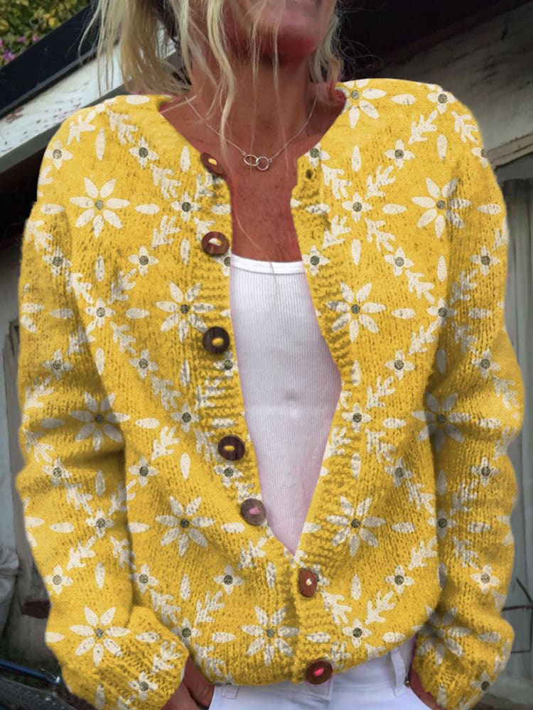 Retro Abstract Art Print Casual Buttoned Cardigan Sweater