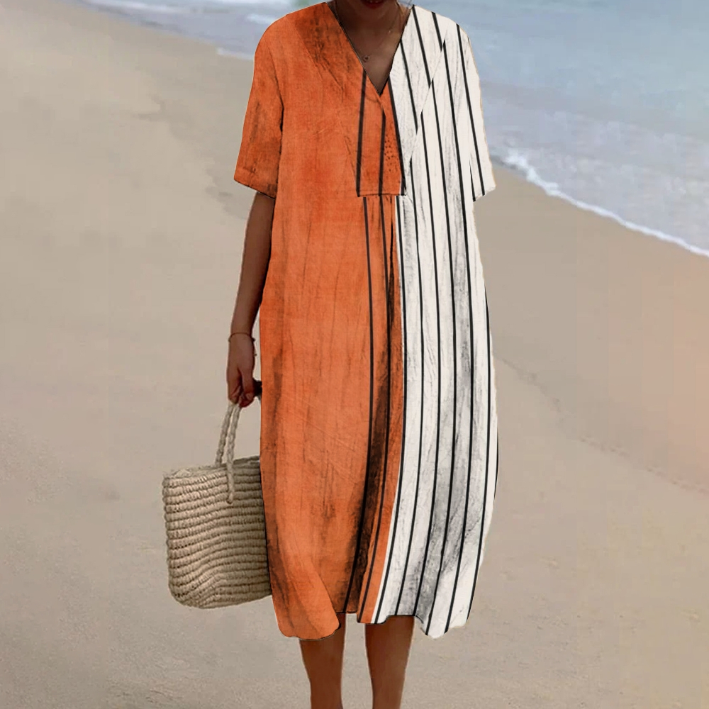 Women's Patchwork Stripe Printed Flowy Dress