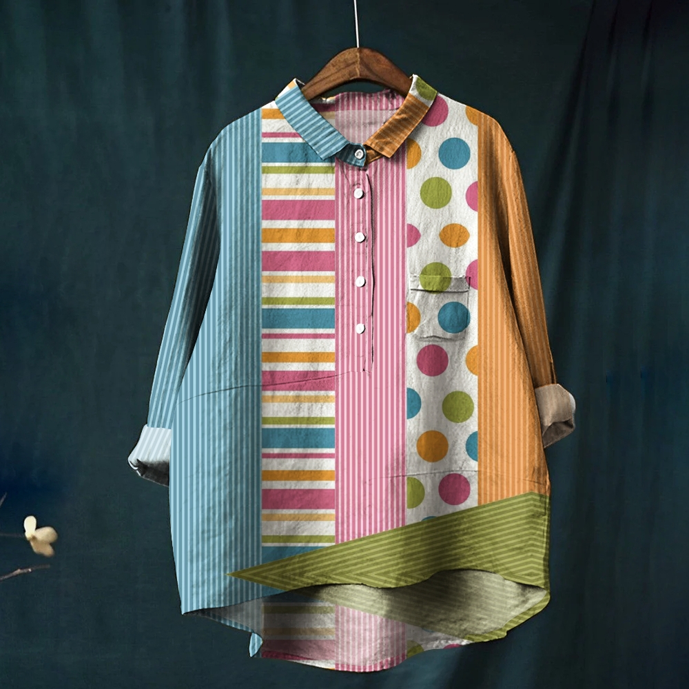 Women's Geometric Stripes Printed Casual Long Sleeve Shirt