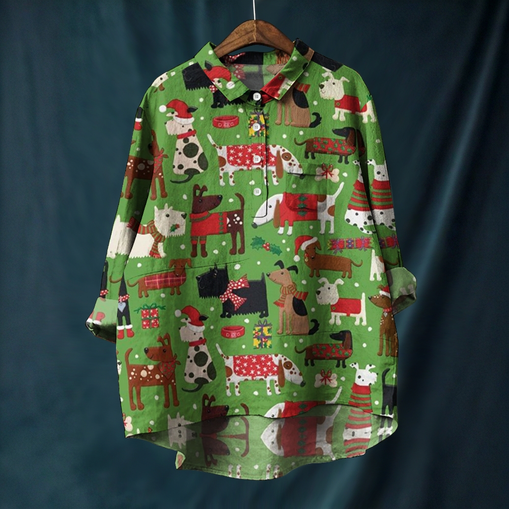 Women's Christmas Dog Printed Casual Long Sleeve Shirt