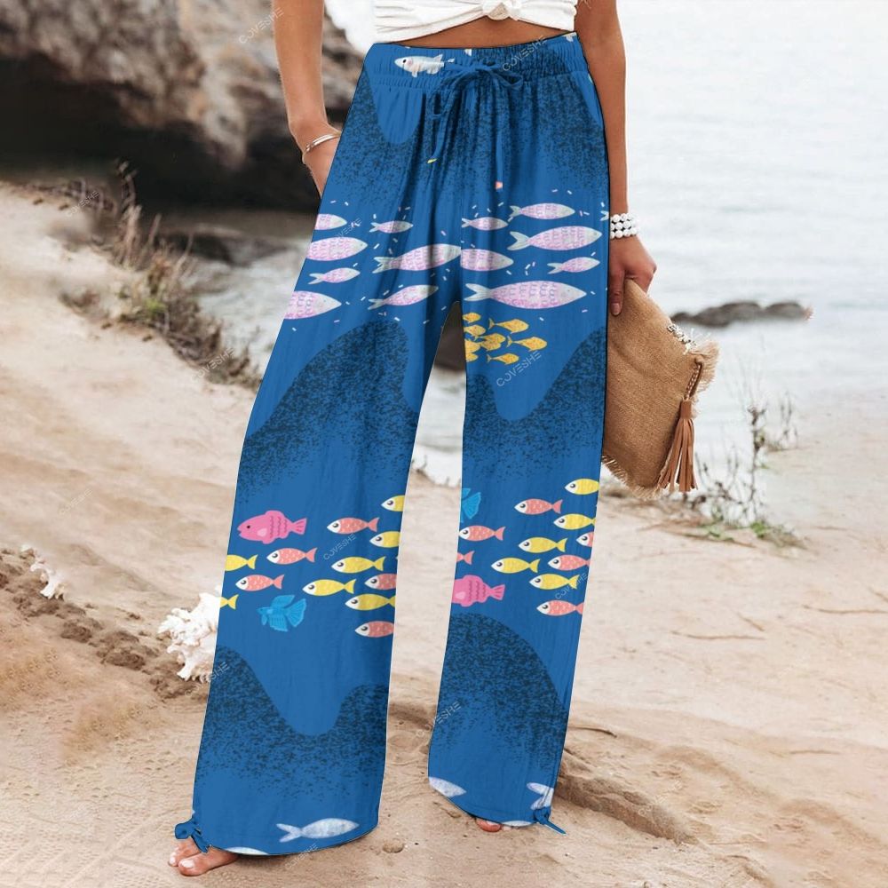 Women's Wide Leg Casual Colorful Cartoon Fish Printed Pants