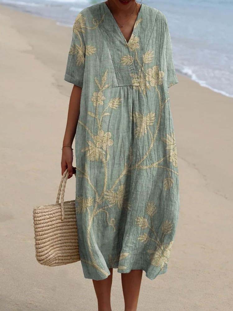 Women's Vintage Geometric Pattern Art Print Cotton Dress