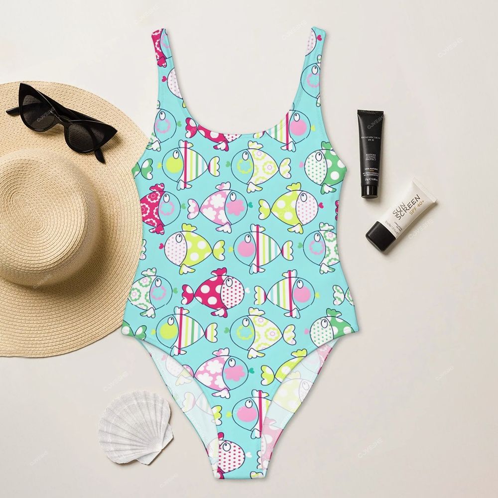 Colorful Cartoon Fish Printed One Piece Swimsuit