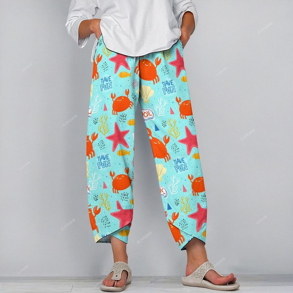 Women's Casual Cartoon Starfish Crab Printed Pants