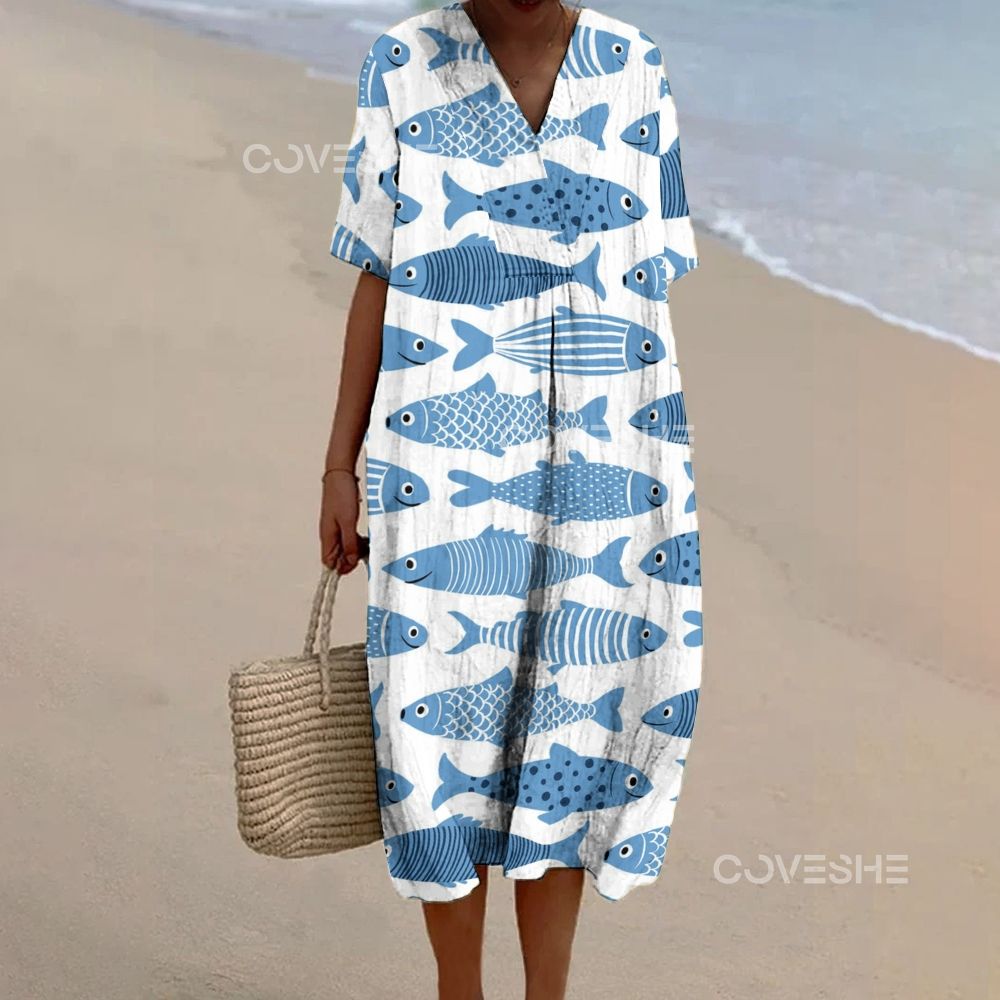 Women's Geometric Fish Printed Flowy Dress