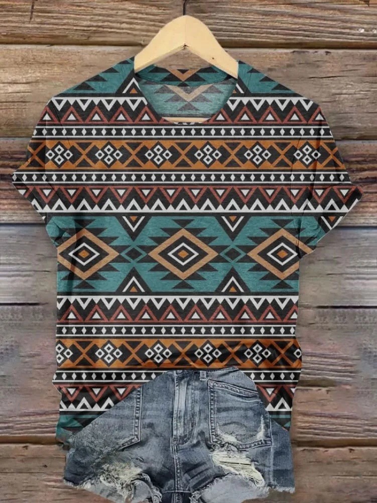 Women's Abstract Geometric Line Pattern Art Print Casual Shirt