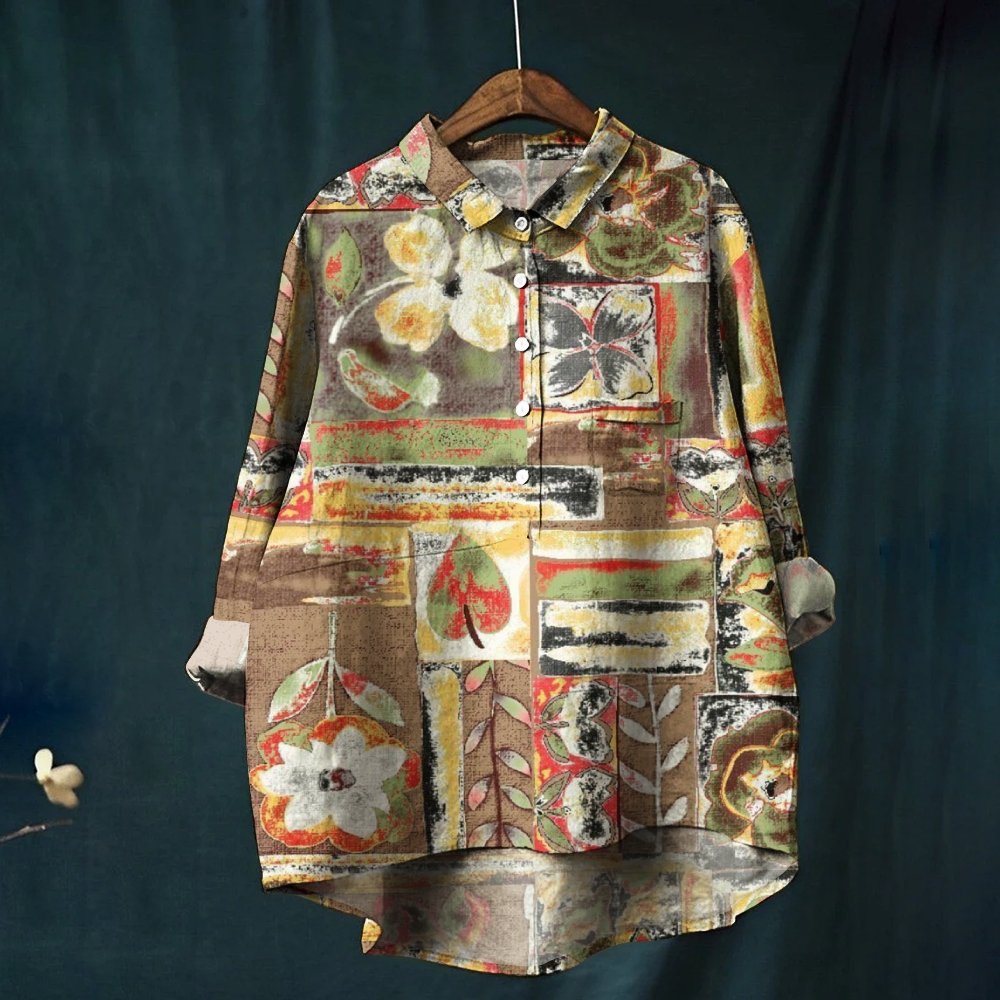 Women's Vintage Flower Patchwork Printed Casual Shirt