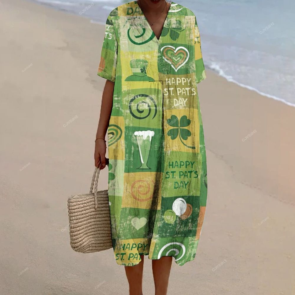 Women's Geometry Four Leaf Clover Printed Flowy Dress