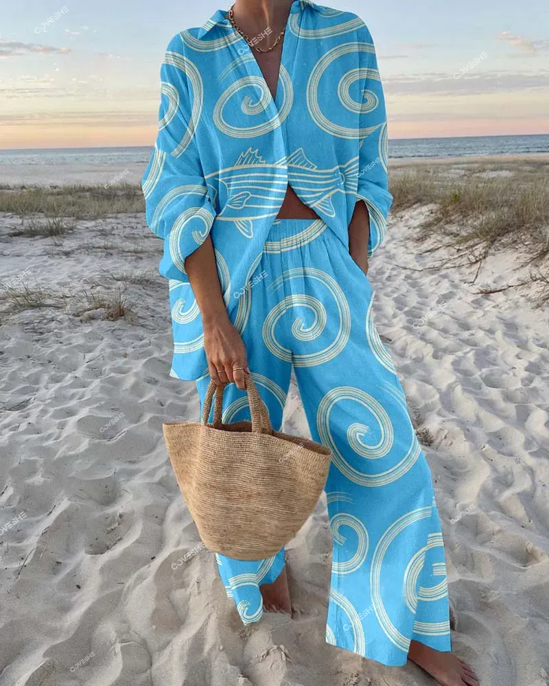 Ladies Geometric Fish Printed Lounge Suit
