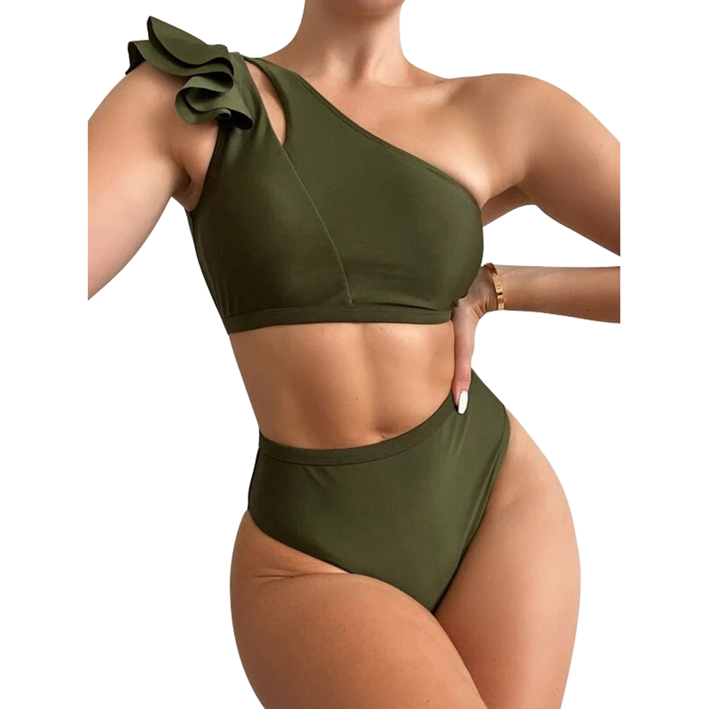 Women's Swimwear One-Shoulder Solid Color Ruffled Split Swimsuit Sexy Backless Beach Bathing Suit