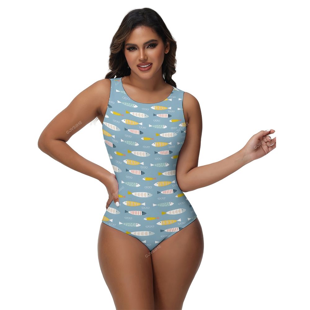 Colorful Cartoon Fish Printed One-Piece Swimsuit
