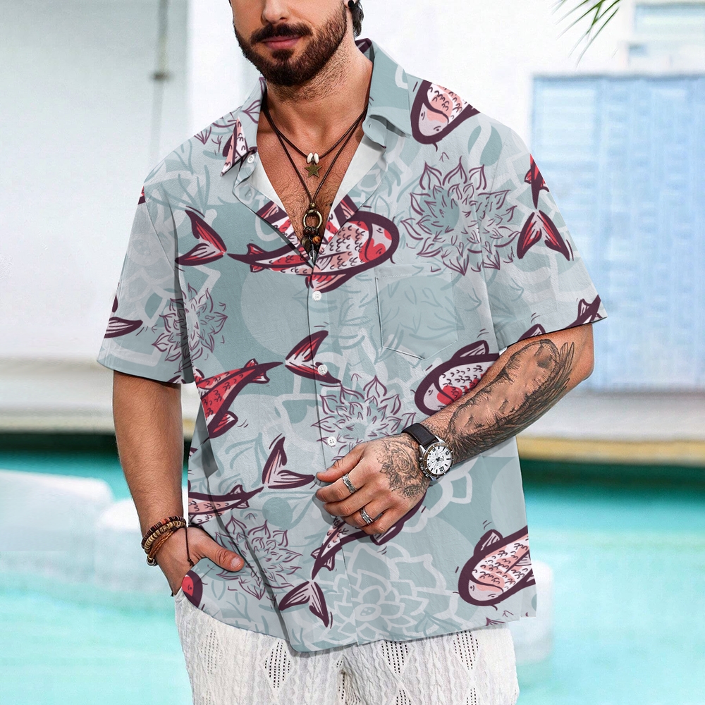 Men's Fish Print Hawaiian Casual Short Sleeve Shirt