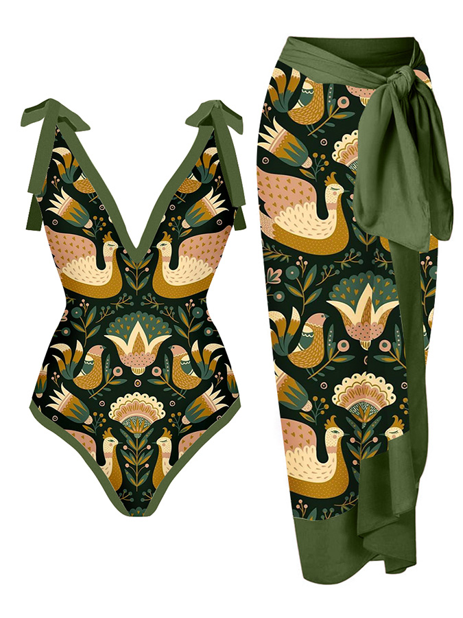 Vintage Print Tie One Piece Swimsuit