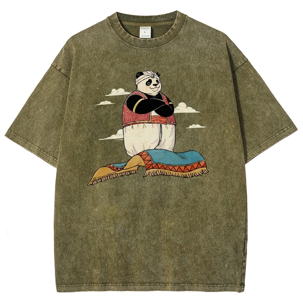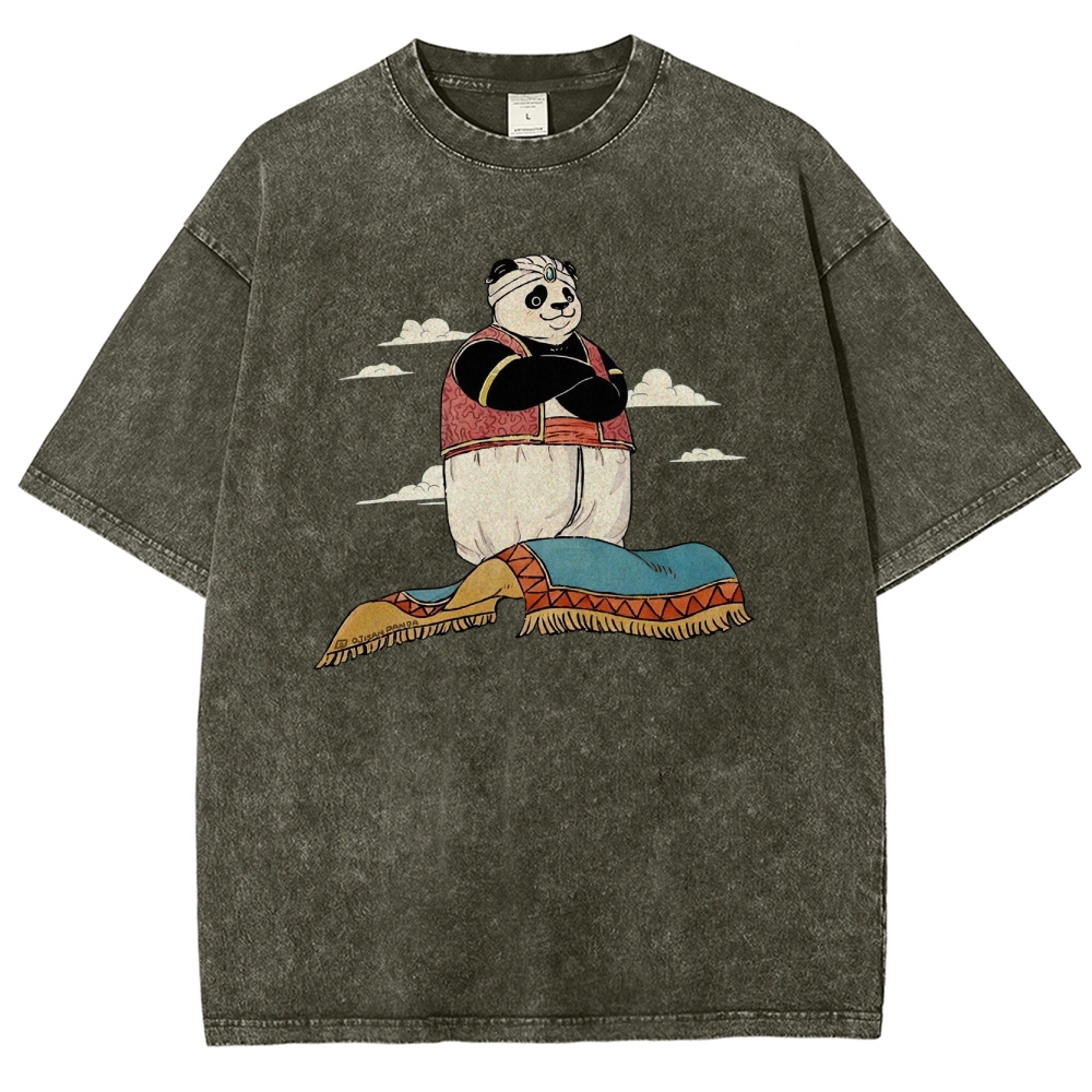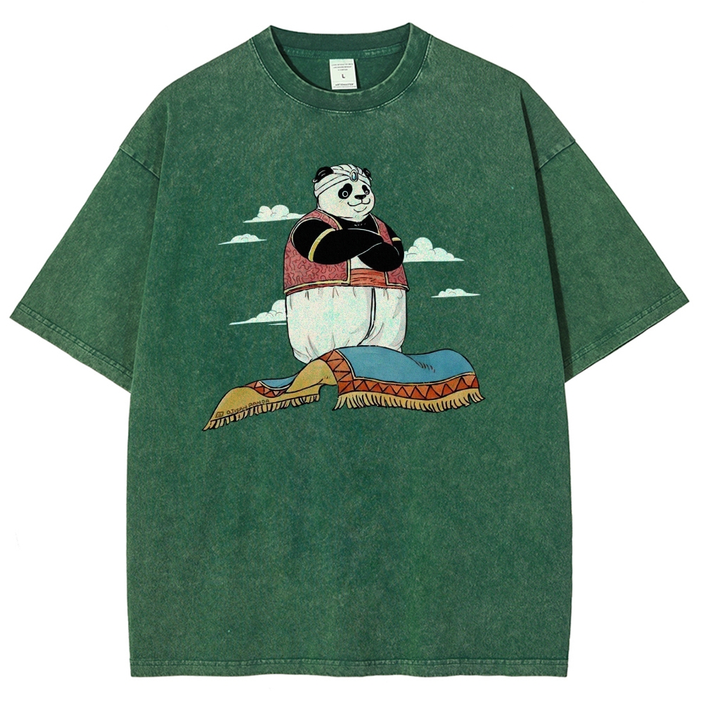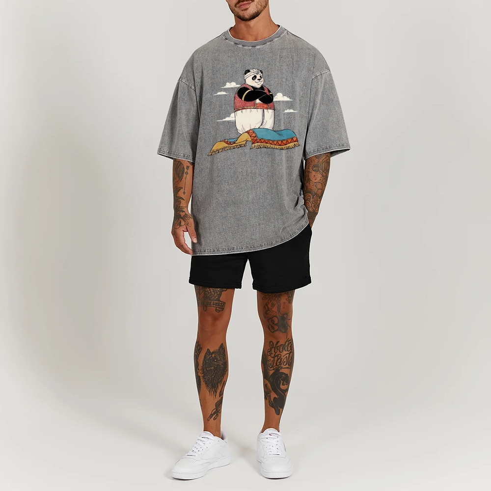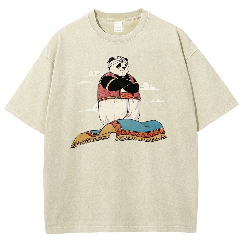 Arab Panda Pattern Washed Vintage Short Sleeves T-Shirt