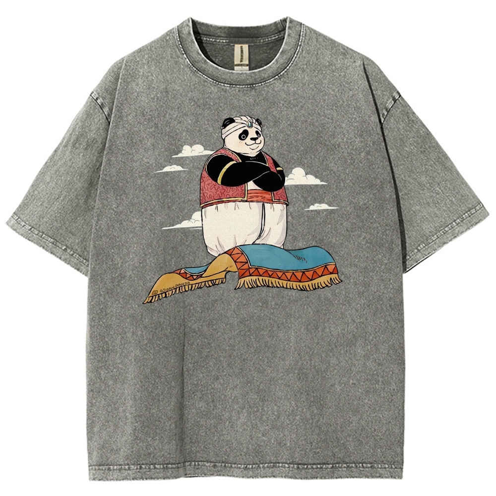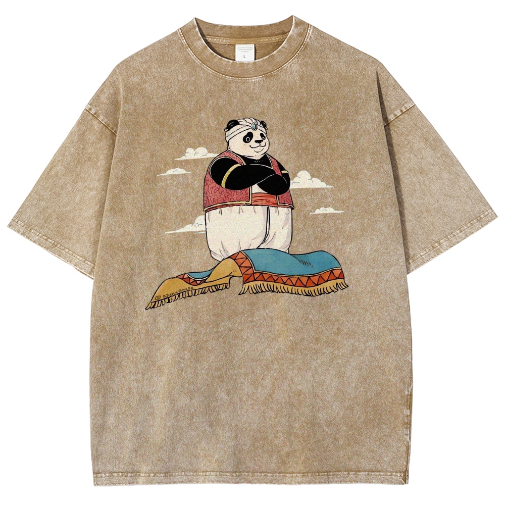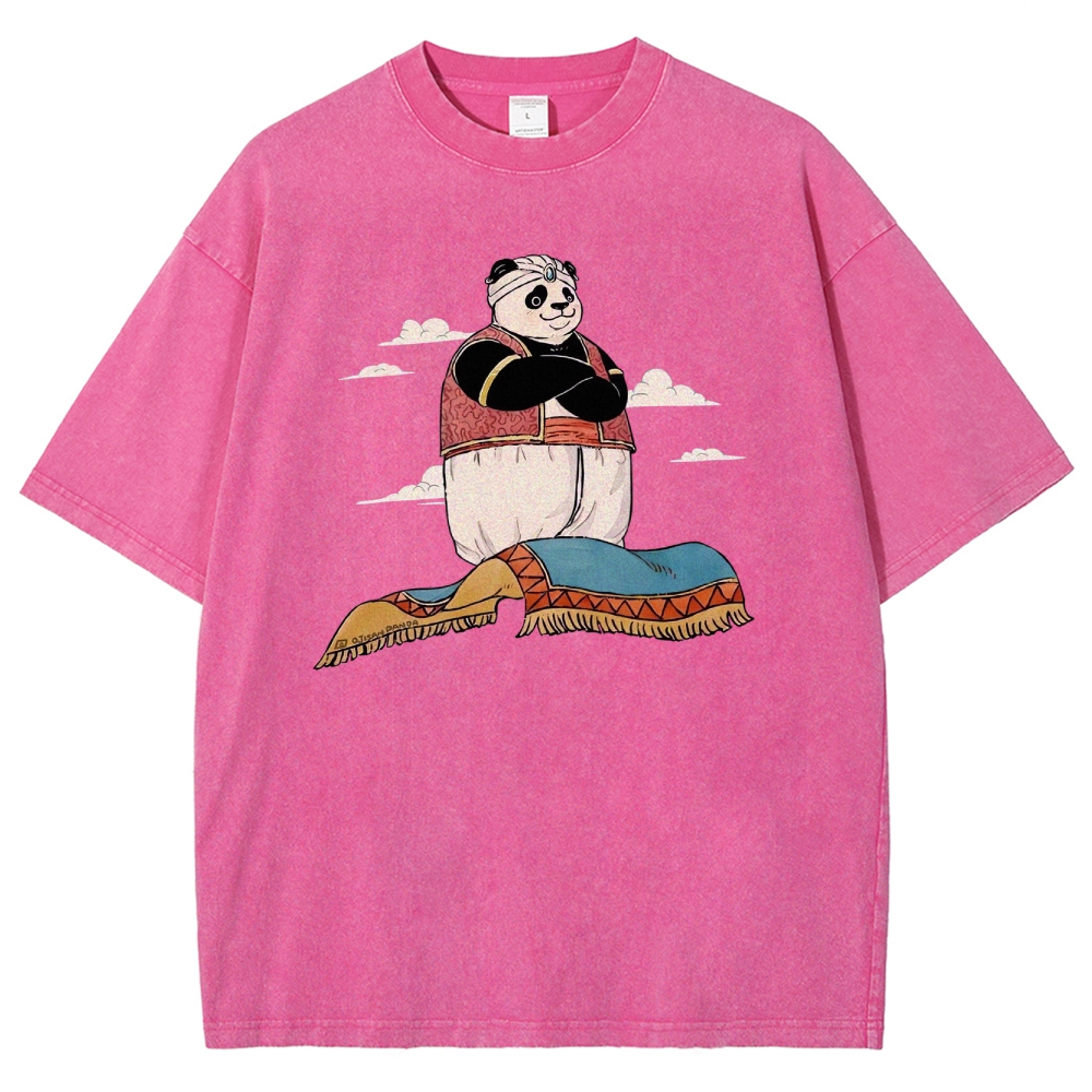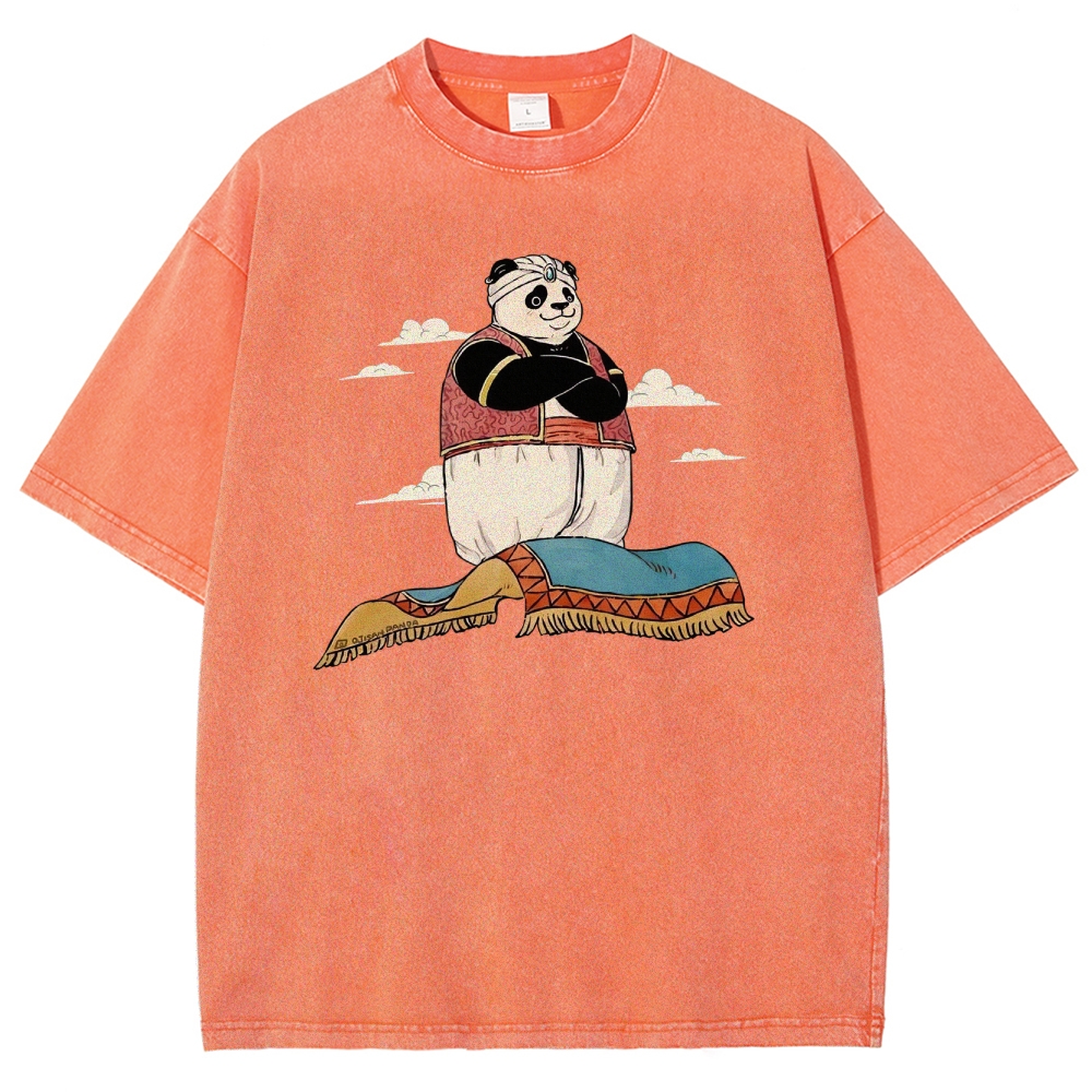 Arab Panda Pattern Washed Vintage Short Sleeves T-Shirt