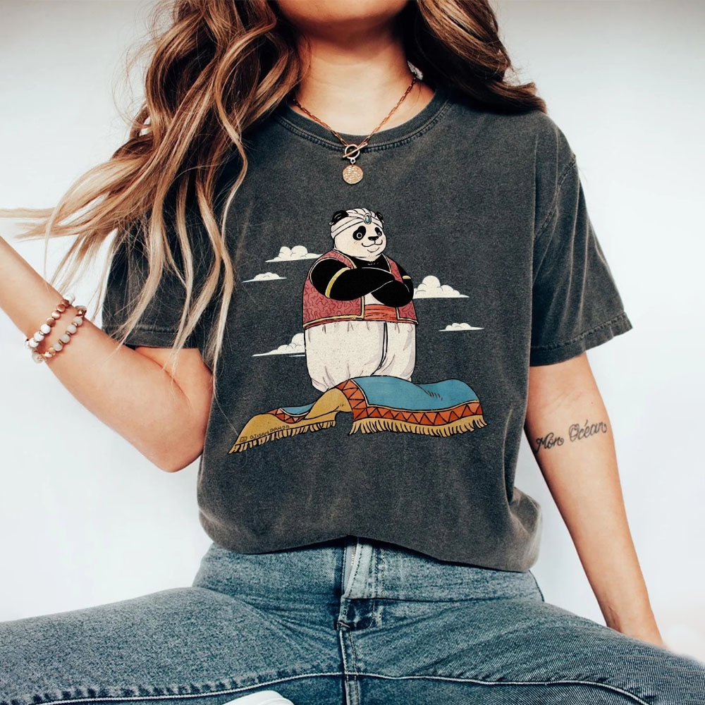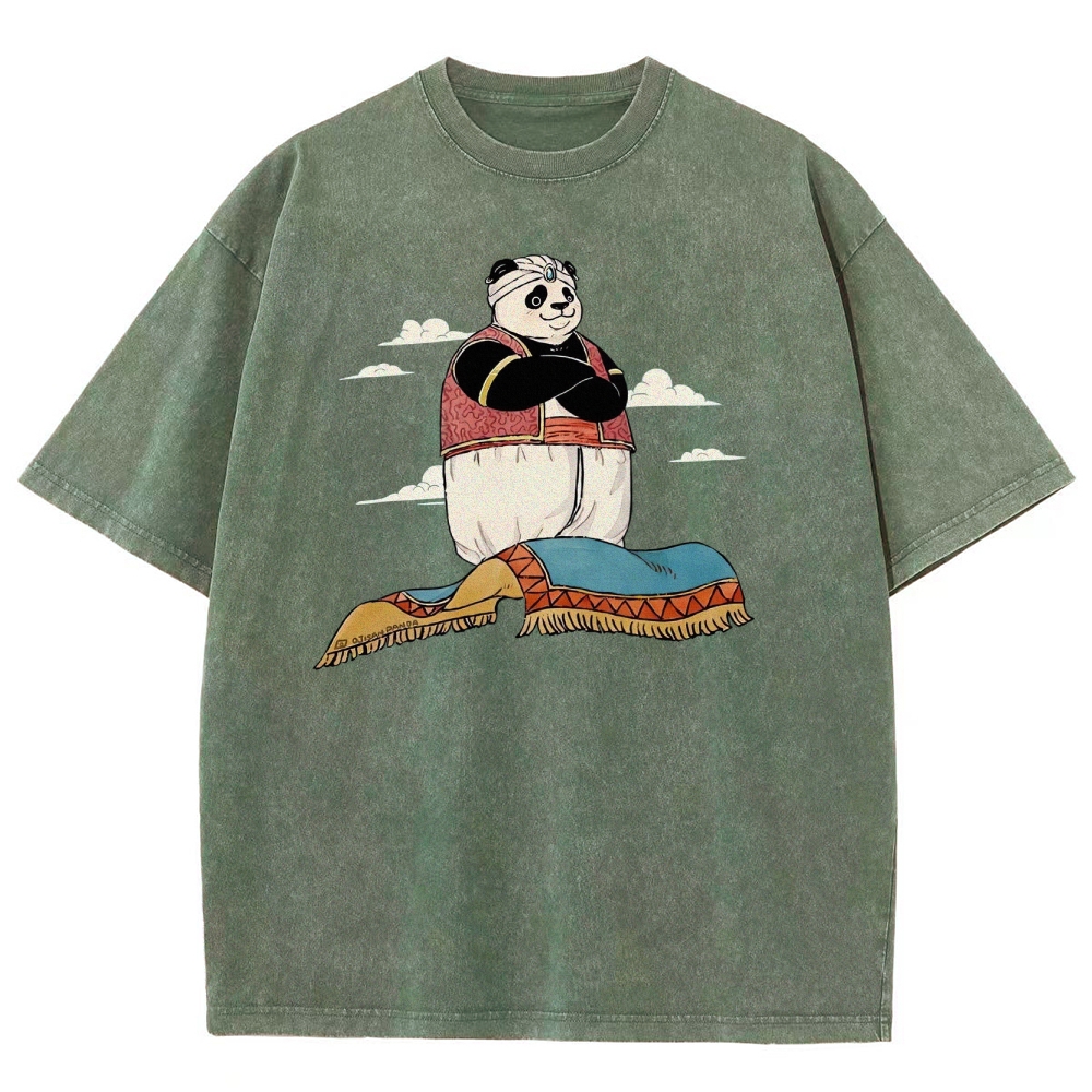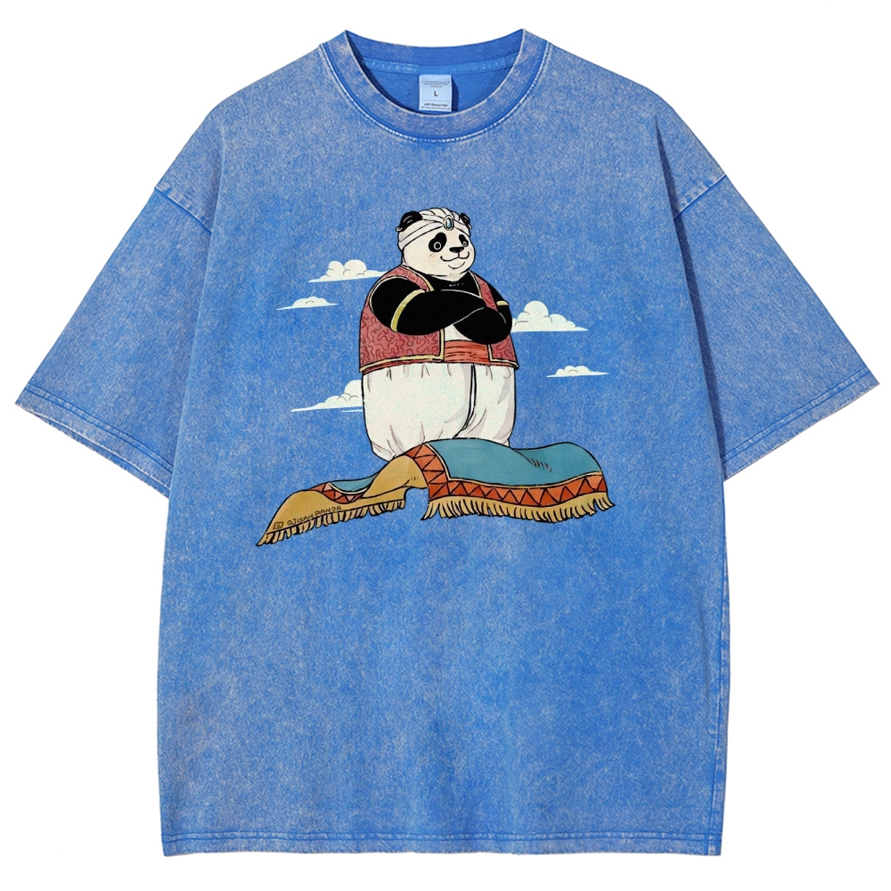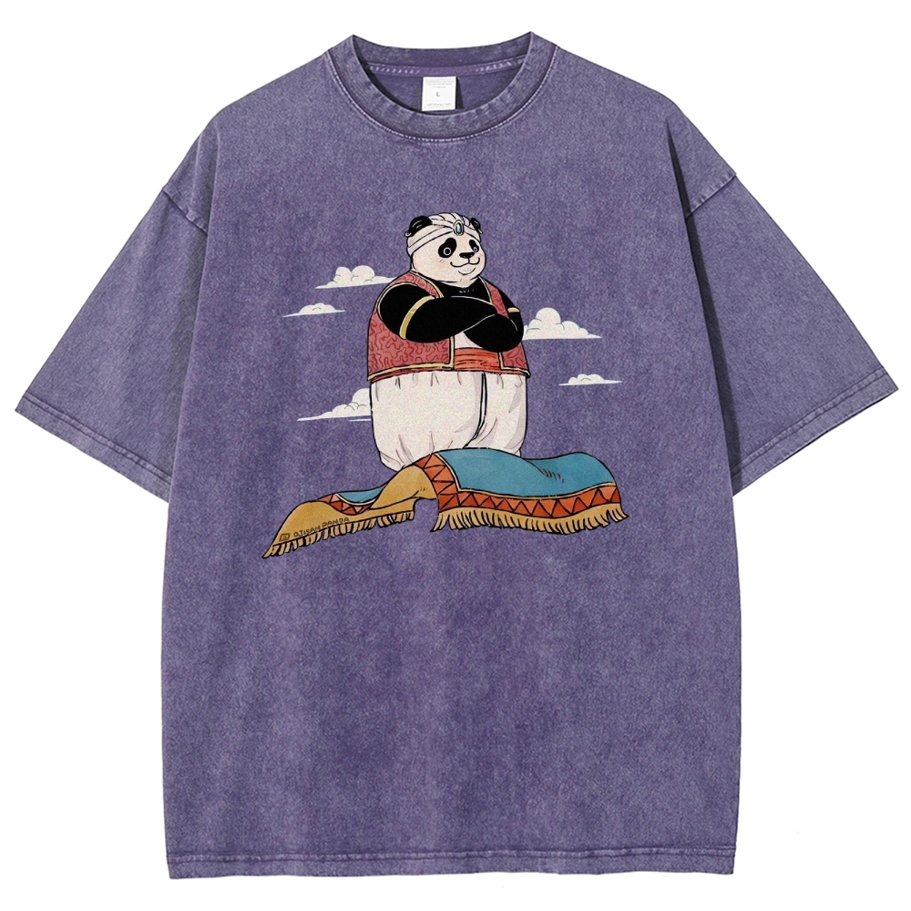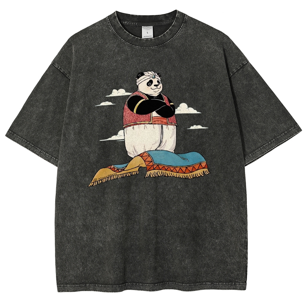 Arab Panda Pattern Washed Vintage Short Sleeves T-Shirt