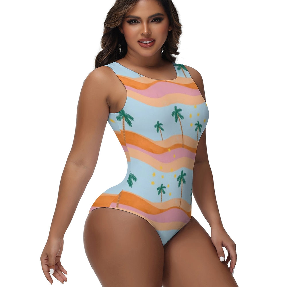 Artistic Coconut Tree Print One-Piece Swimsuit
