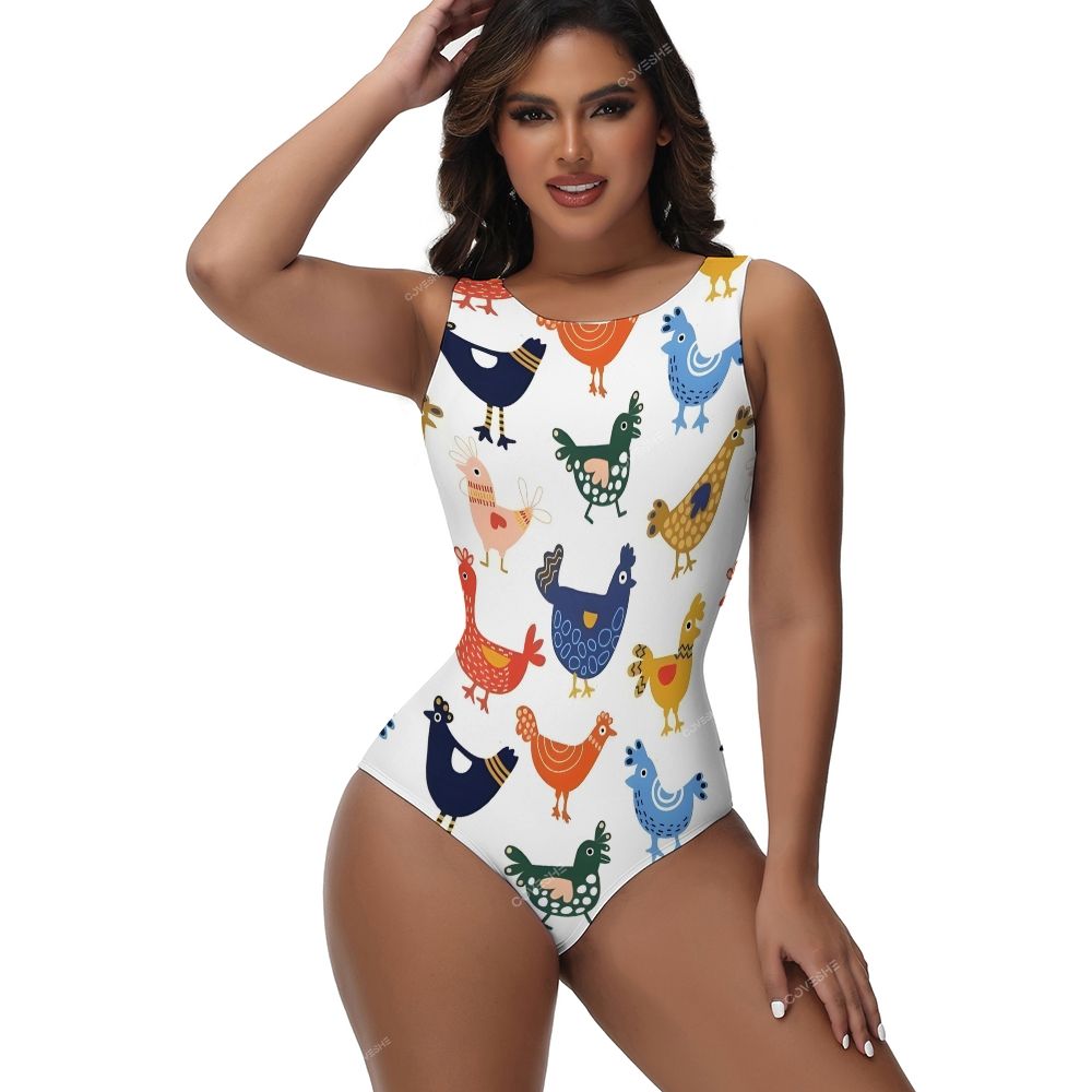 Cartoon Art Chicken Printed One-Piece Swimsuit