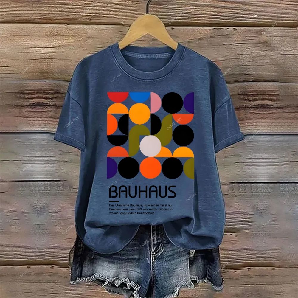 Crew Neck Artistic Geometric Circles Printed Casual Cotton T-shirt