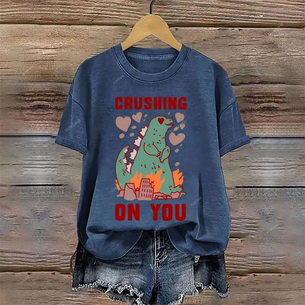 Crew Neck Casual Crushing On You Printed Cotton T-shirt