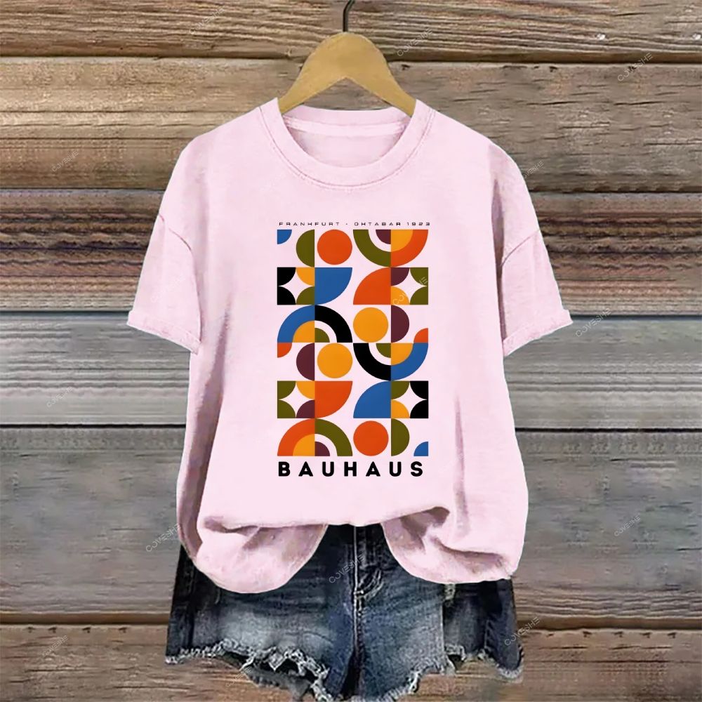 Crew Neck Colorful Geometric Printed Casual Cotton T-shirt