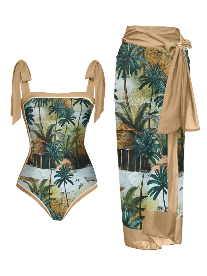 Fashion Print Lace Up One Piece Swimsuit