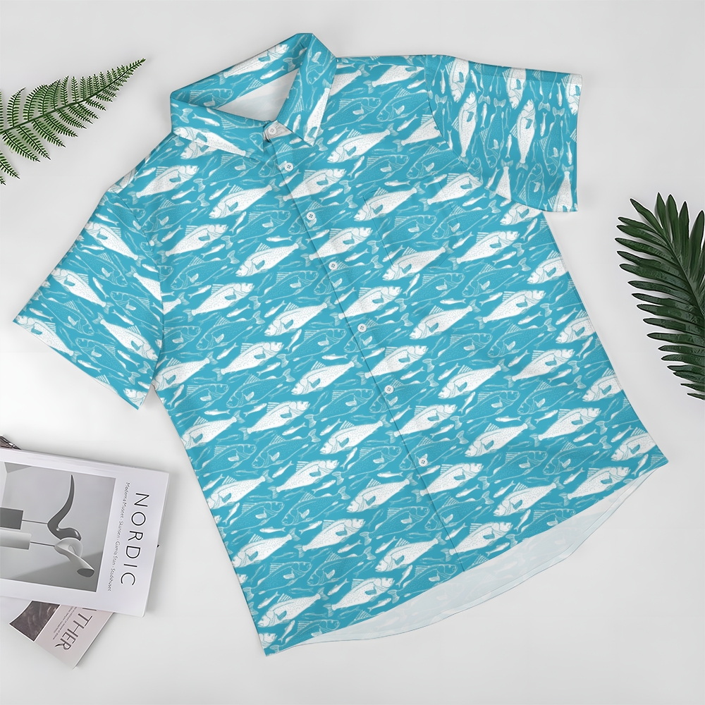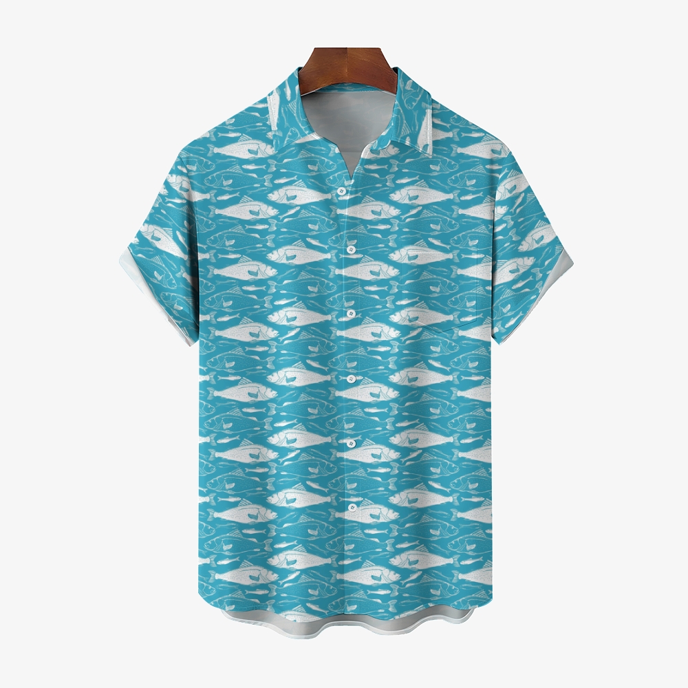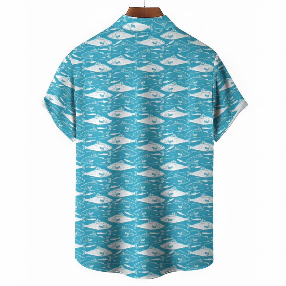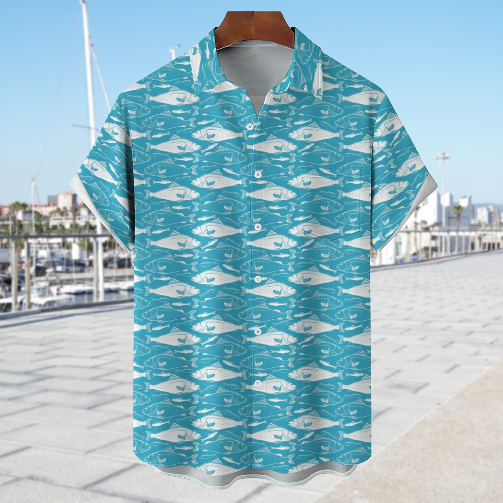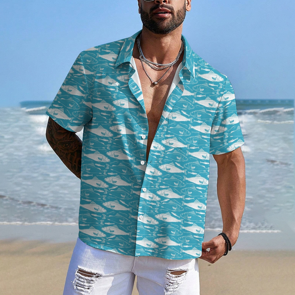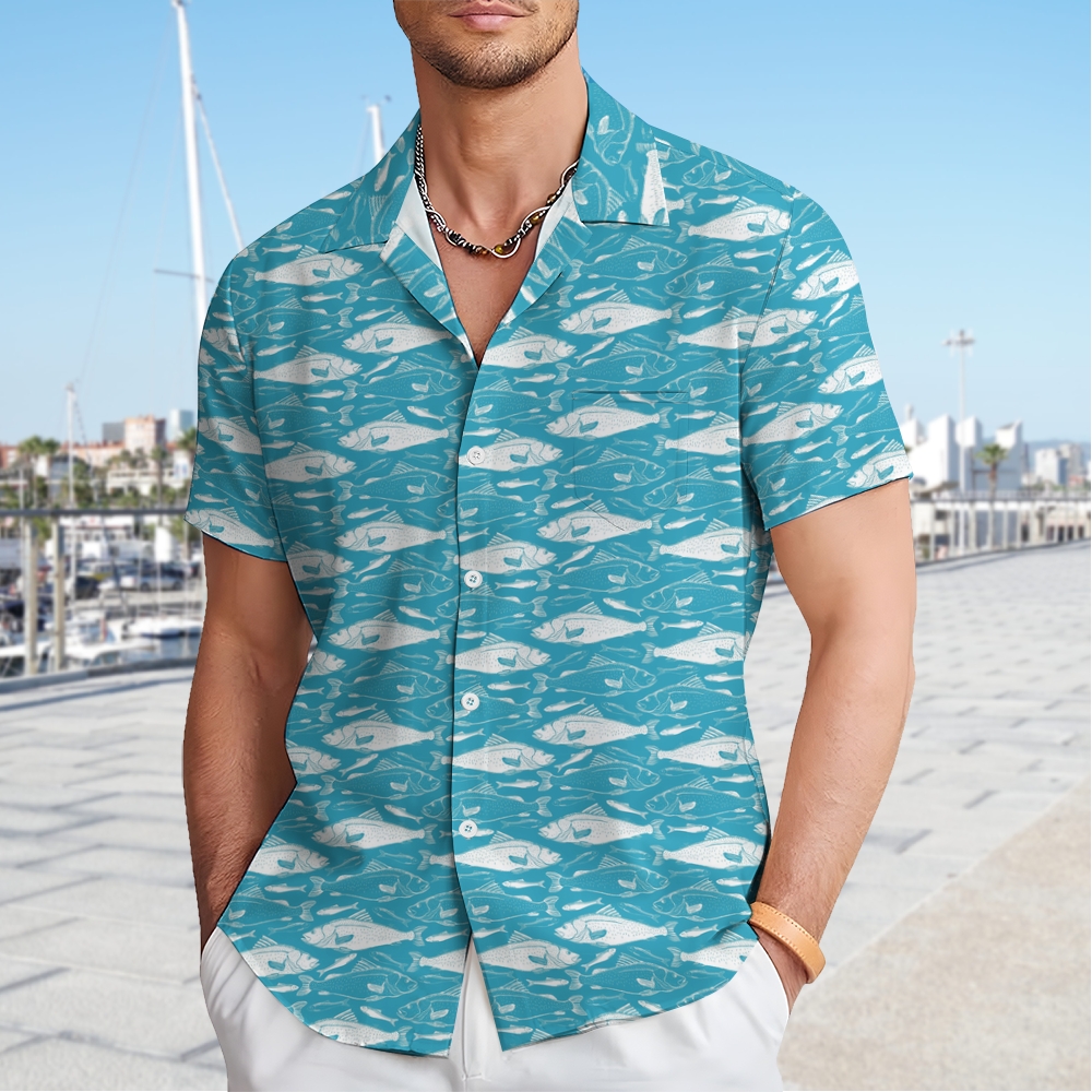 Men's Fish Print Hawaiian Casual Short Sleeve Shirt