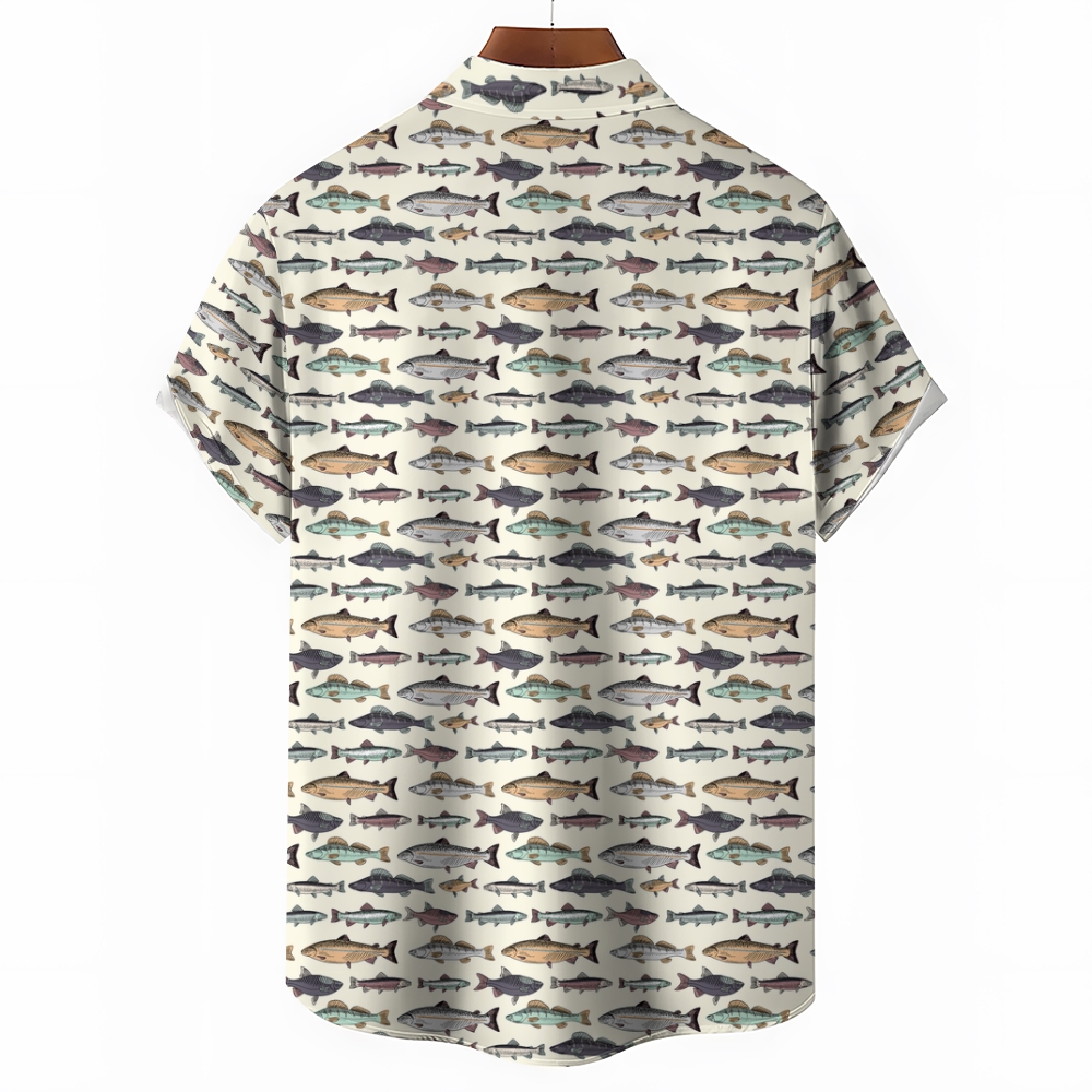 Men's Fish Print Hawaiian Casual Short Sleeve Shirt