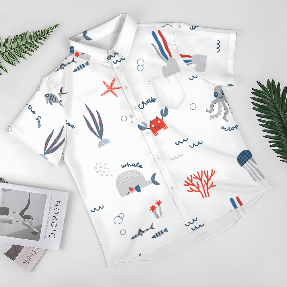 Men's Marine Life Print Hawaiian Casual Short Sleeve Shirt 2406001943