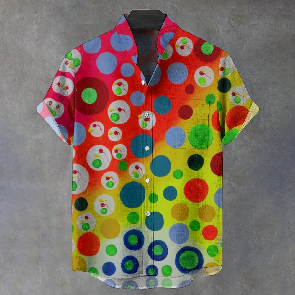 Men's Stand Collar Abstract Color Block Printed Short Sleeve Shirt
