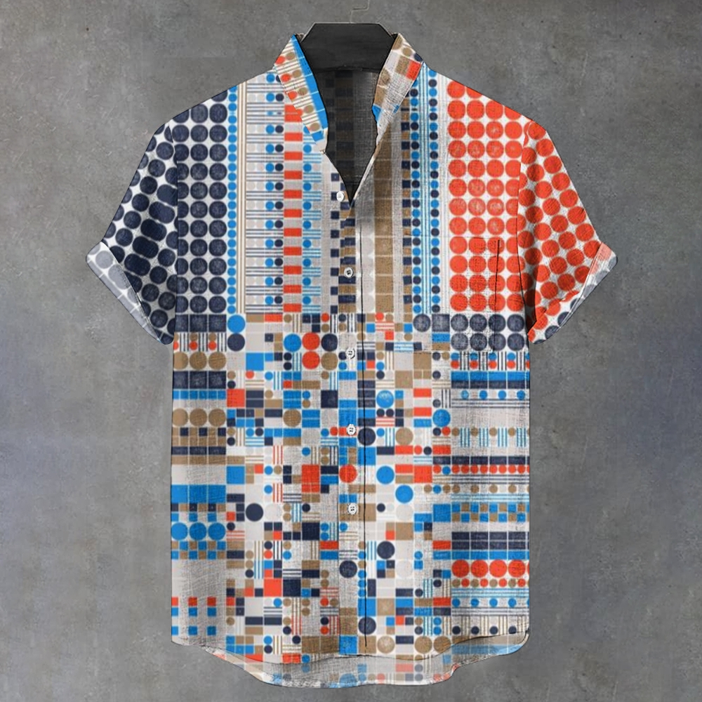 Men's Stand Collar Irregular Geometric Dots Printed Short Sleeve Shirt