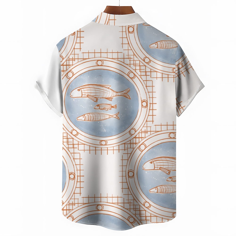Men's Vintage Fish Print Hawaiian Casual Short Sleeve Shirt
