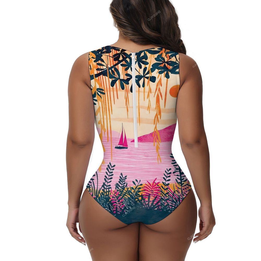 Pink Sunset Printed One-Piece Swimsuit