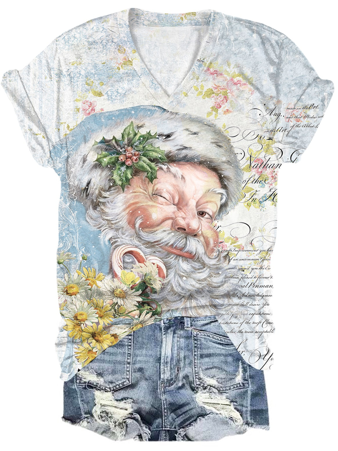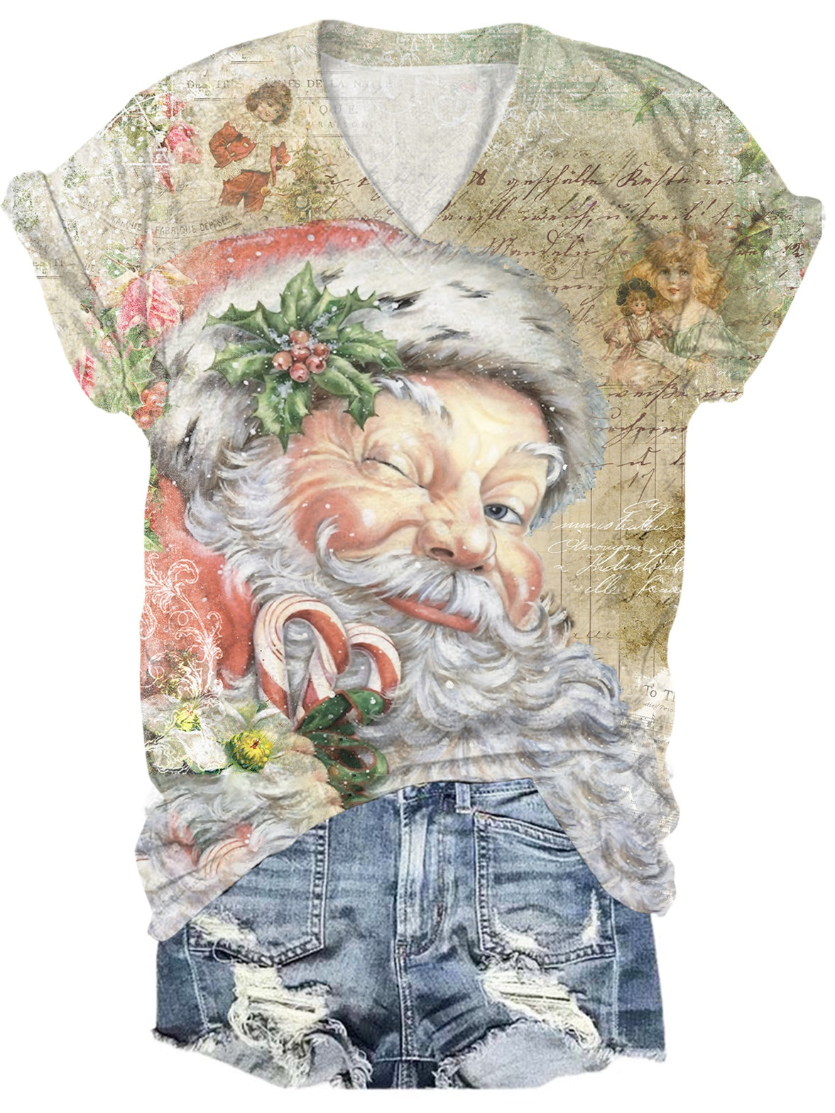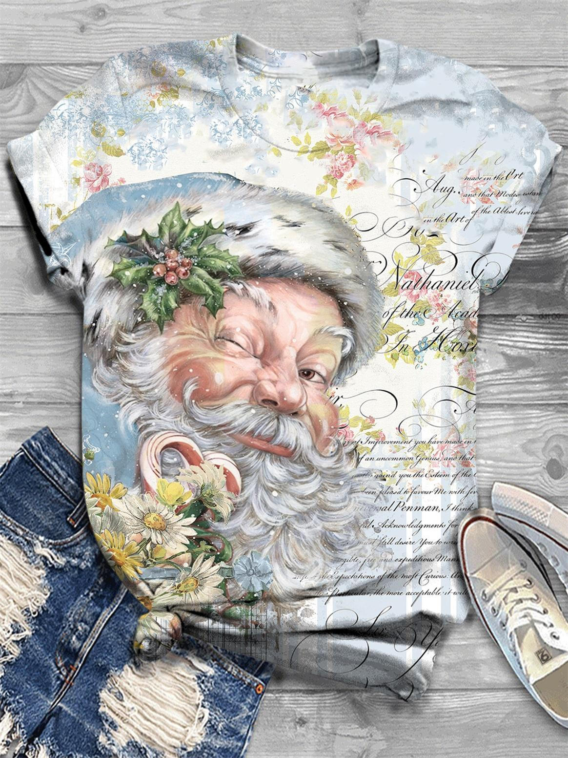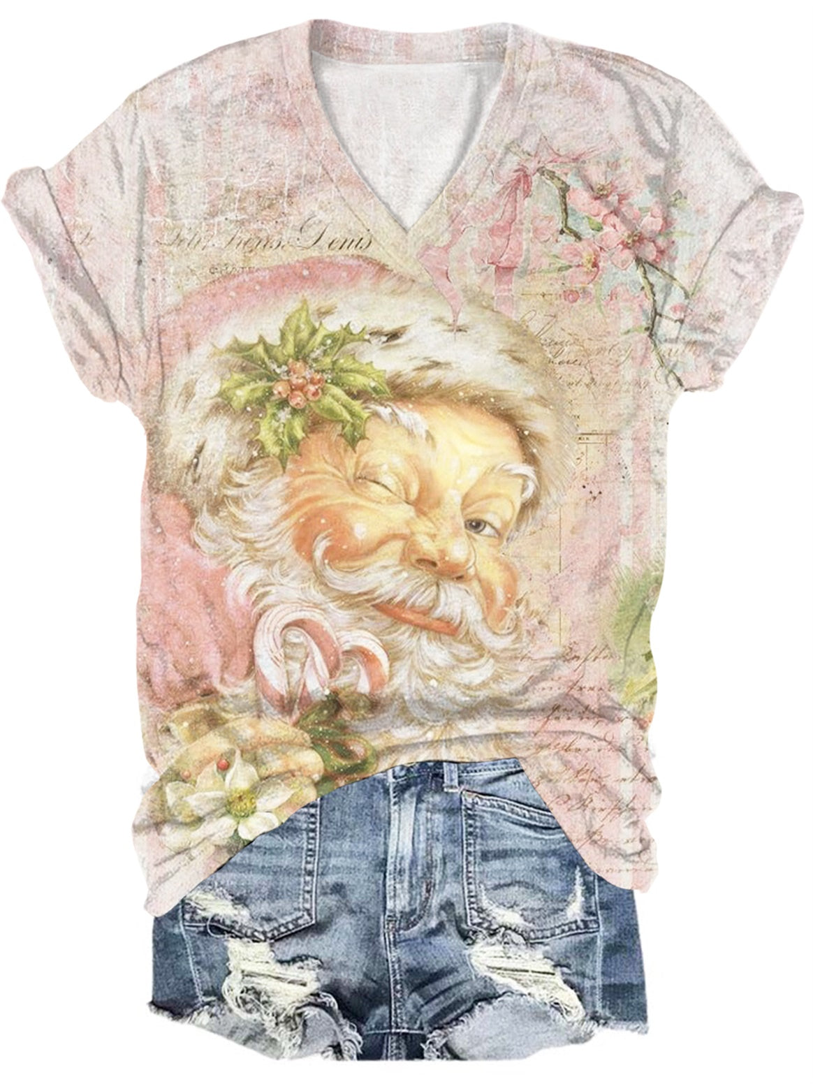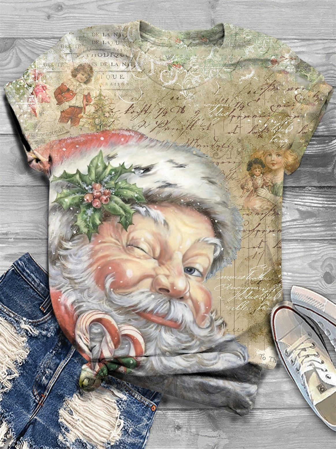 Pink Vintage Santa Print Crew Neck T-Shirt