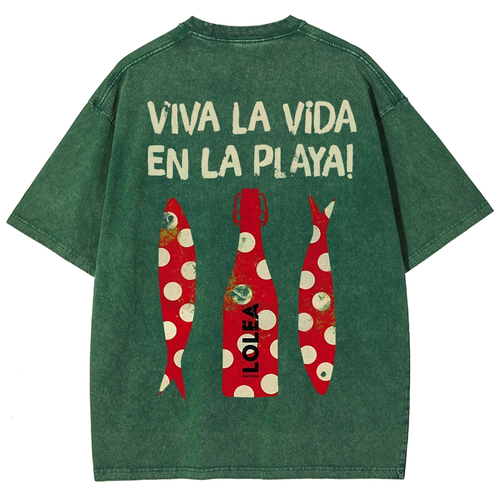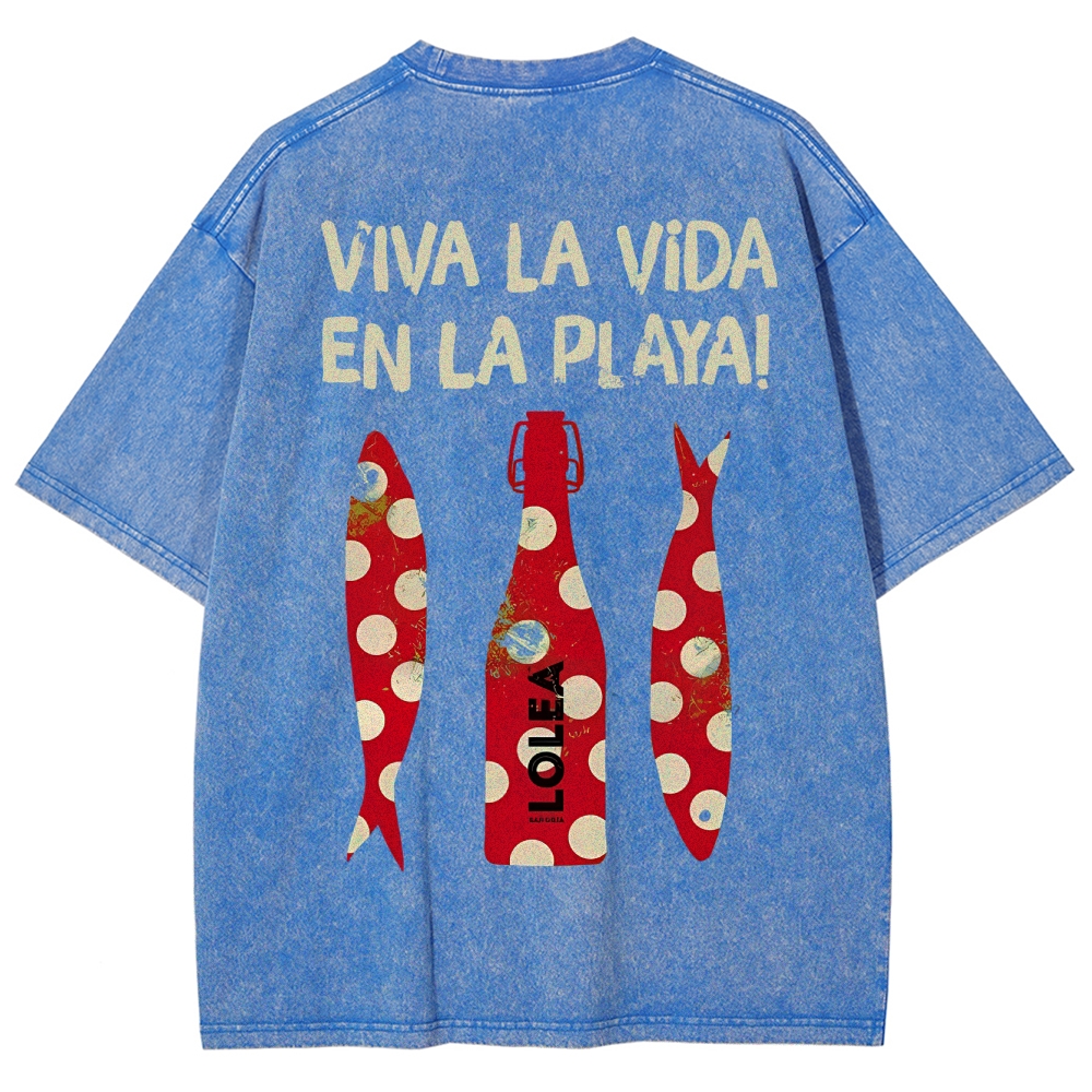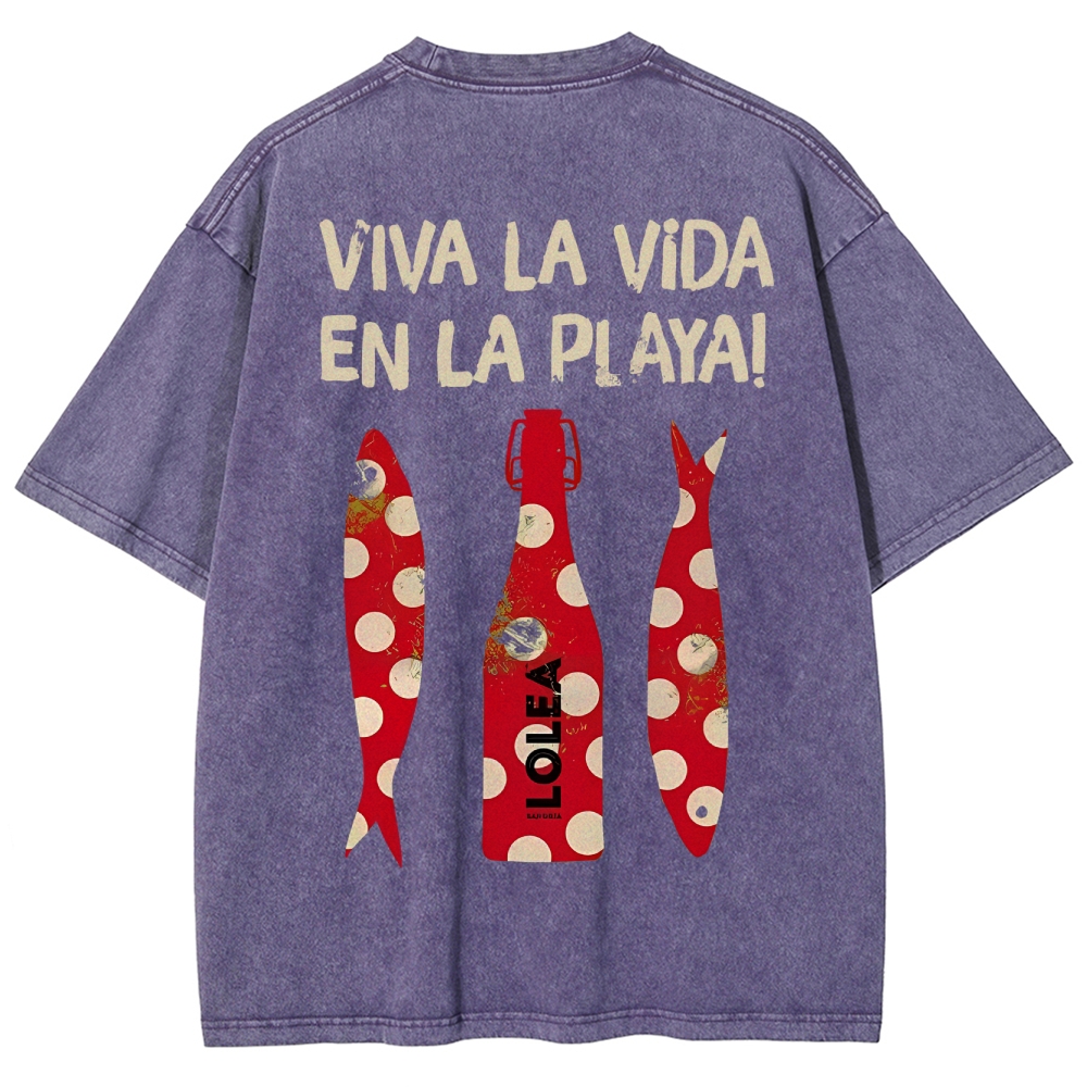 Polka Dot Fish Washed Vintage Short Sleeves T-Shirt