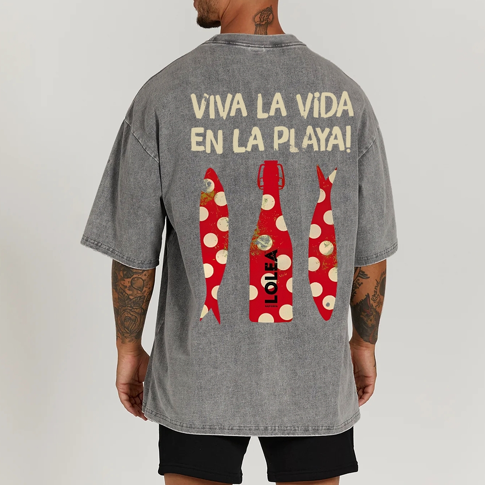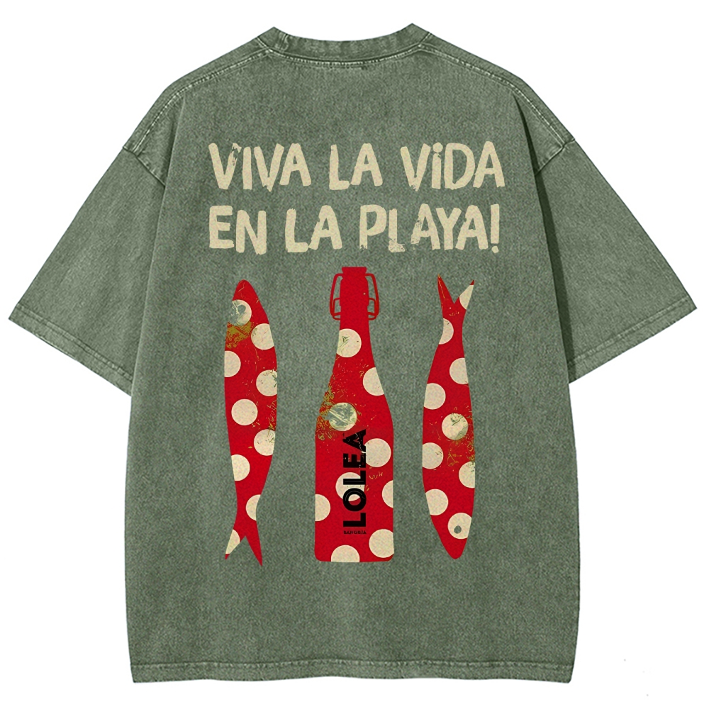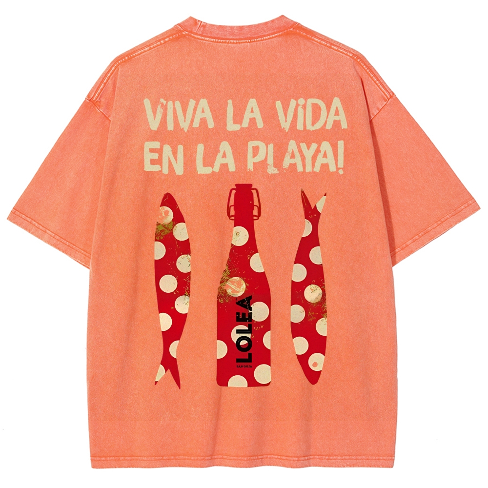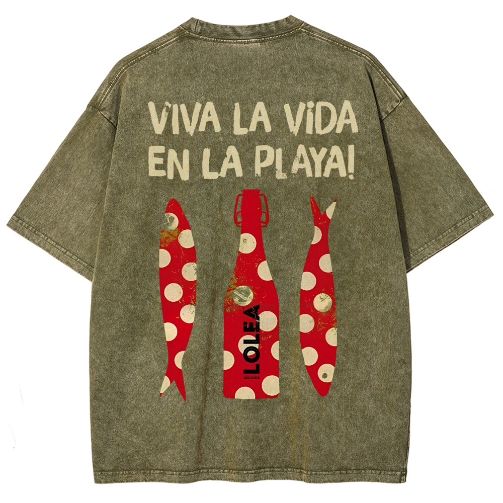 Polka Dot Fish Washed Vintage Short Sleeves T-Shirt
