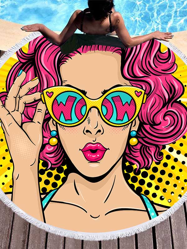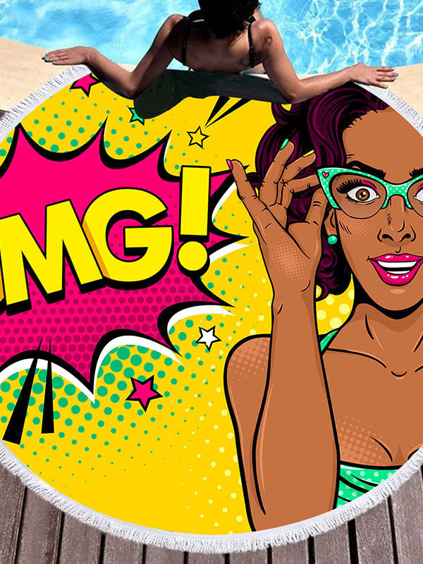 Retro Print Round Shape Tasseled Soft Beach Mat