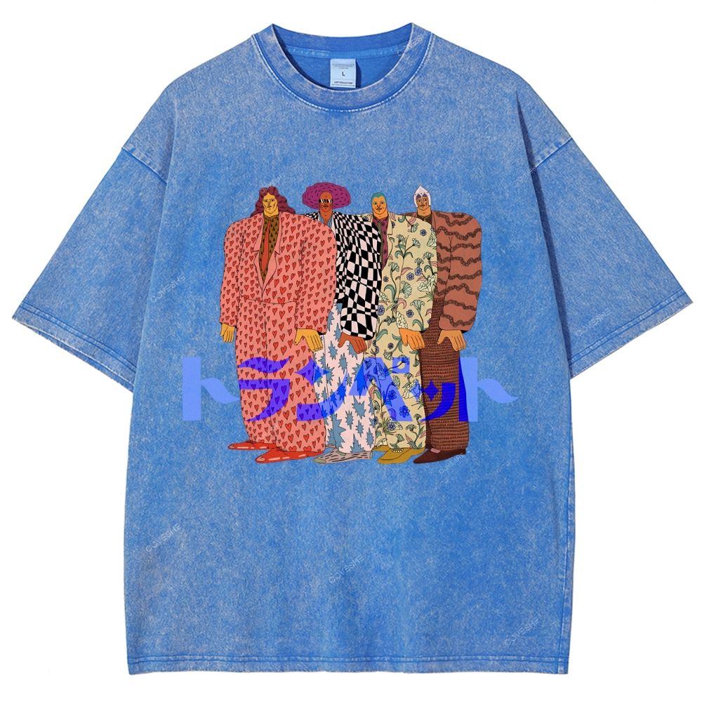 Unisex Japanese Portrait Printed Washed Tee