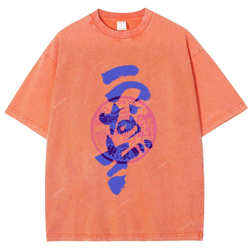 Unisex Japanese Stamp Printed Washed Tee