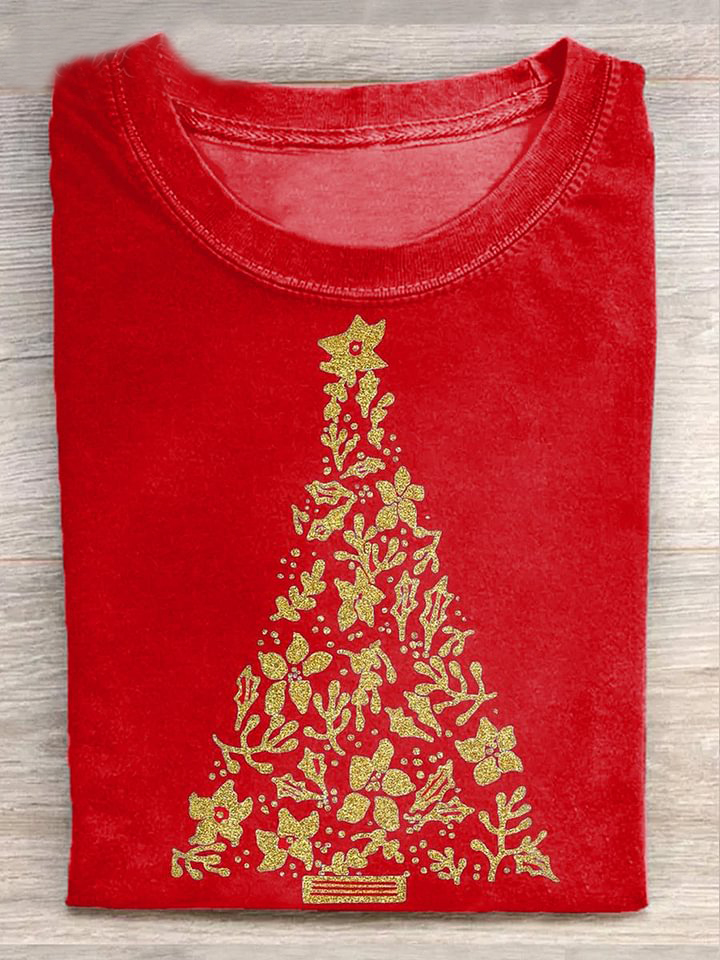 Unisex Christmas Tree Art Illustration Printed Casual Cotton Short Sleeve T-Shirt