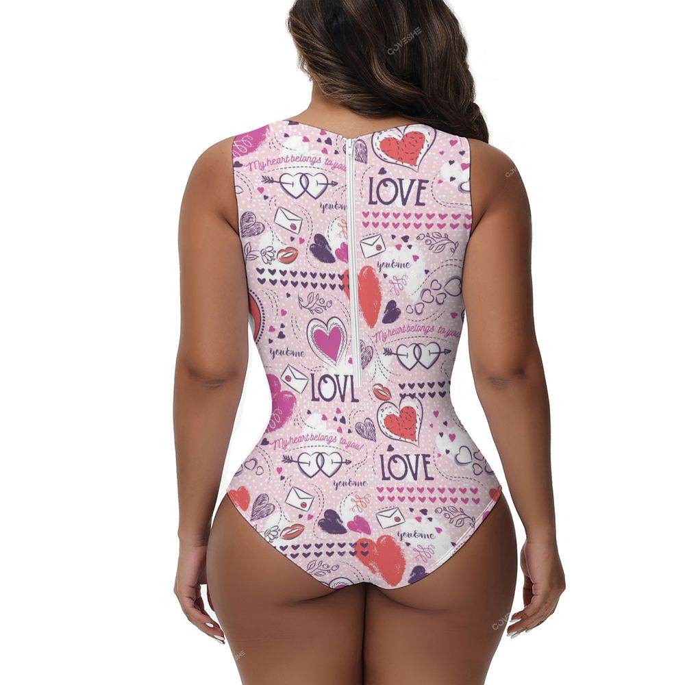 Valentine's Day Love Heart Printed One-Piece Swimsuit