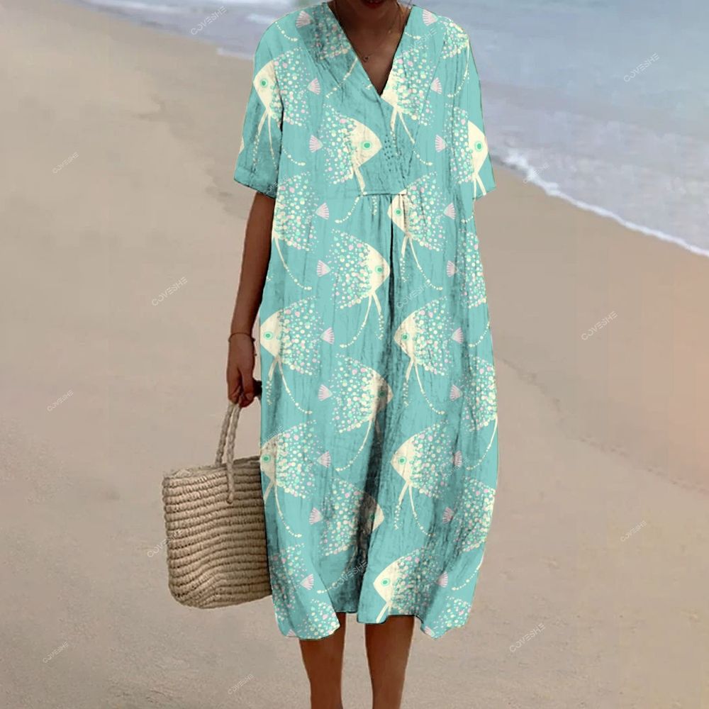 Women's Artistic Cartoon Fish Printed Flowy Dress