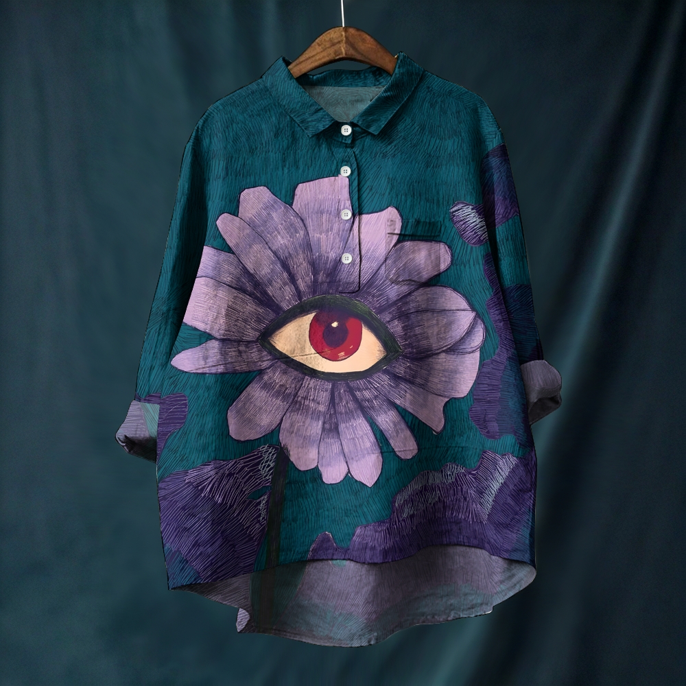 Women's Artistic Flower Eyes Printed Casual Long Sleeve Shirt