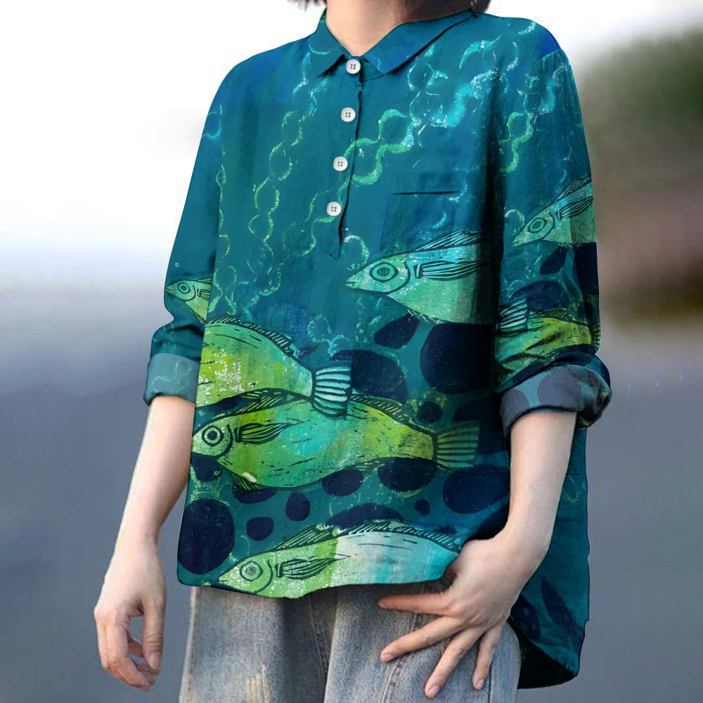 Women's Bottom Fish Printed Casual Long Sleeve Shirt