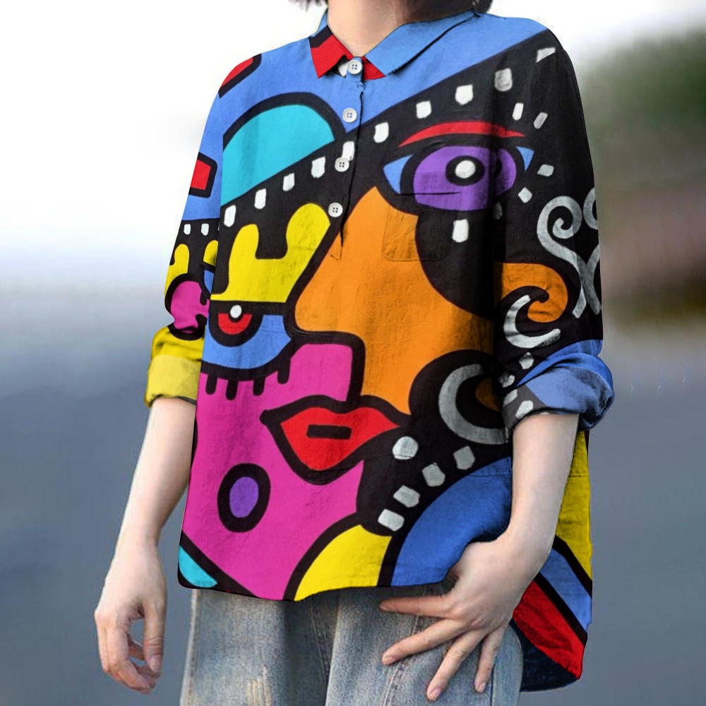 Women's Cartoon Art Eyes Printed Casual Long Sleeve Shirt