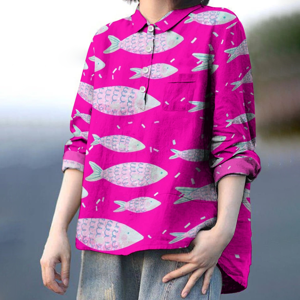 Women's Cartoon Fish Printed Casual Long Sleeve Shirt