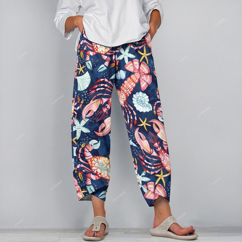 Women's Casual Artistic Colorful Lobster Crab Printed Pants
