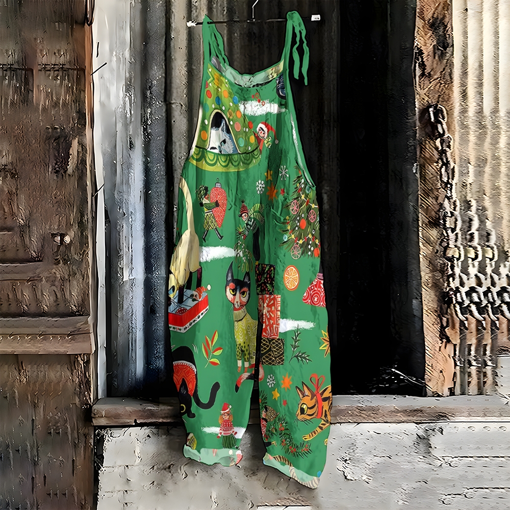 Women's Casual Christmas Cat Printed Jumpsuit