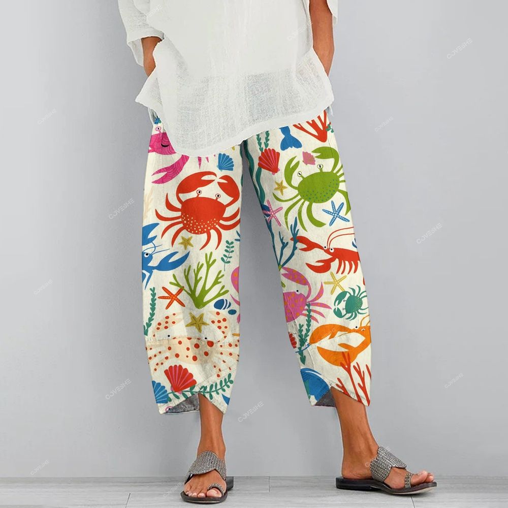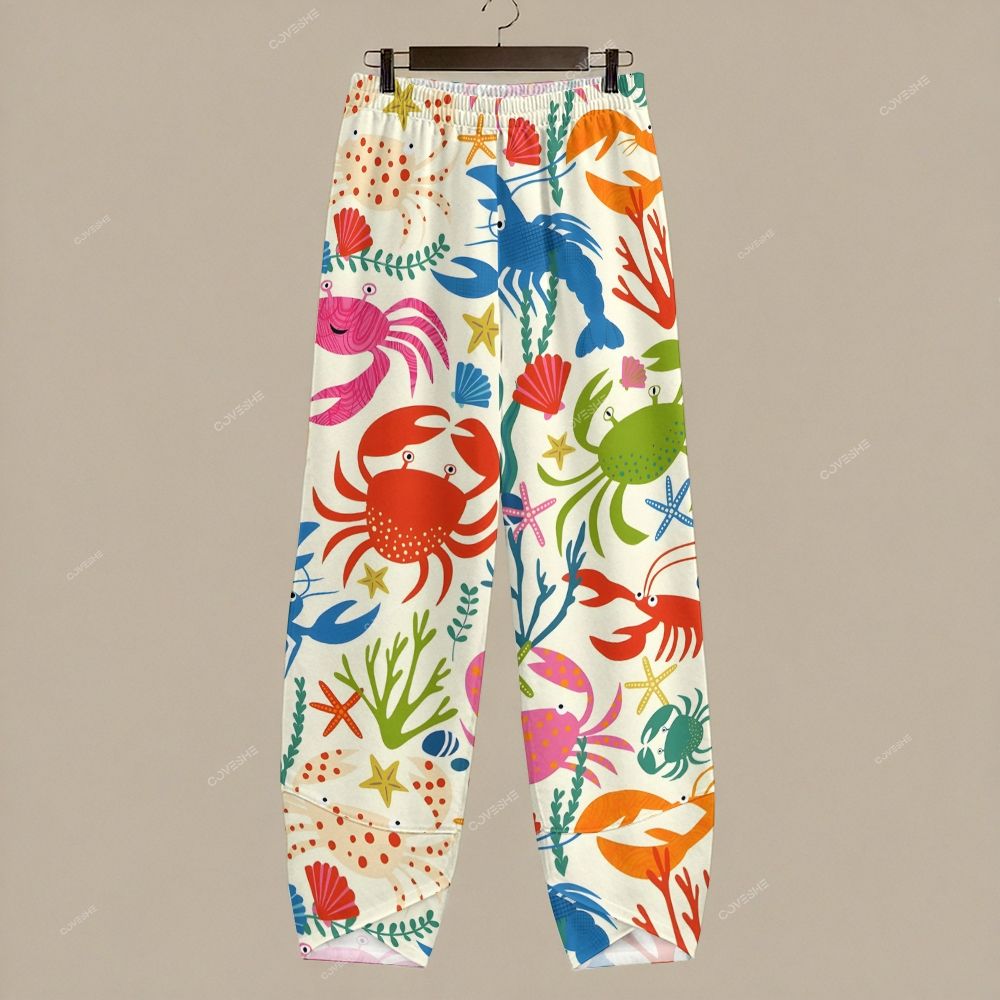 Women's Casual Colorful Cartoon Crab Lobster Printed Pants