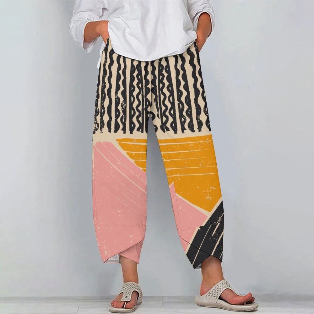 Women's Casual Geometric Striped Color Block Printed Pants